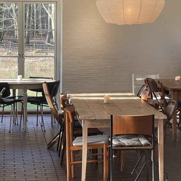 I en indbydende nærmest hjemlig atmosfære, kan du sænke skuldrene og sanse skovhavens særlige lyde og lys.
